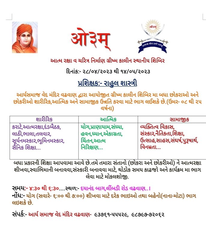 संपर्क :- आर्य समाज वेद मंदिर वढ़वान – 93761-55529, 98797-72062