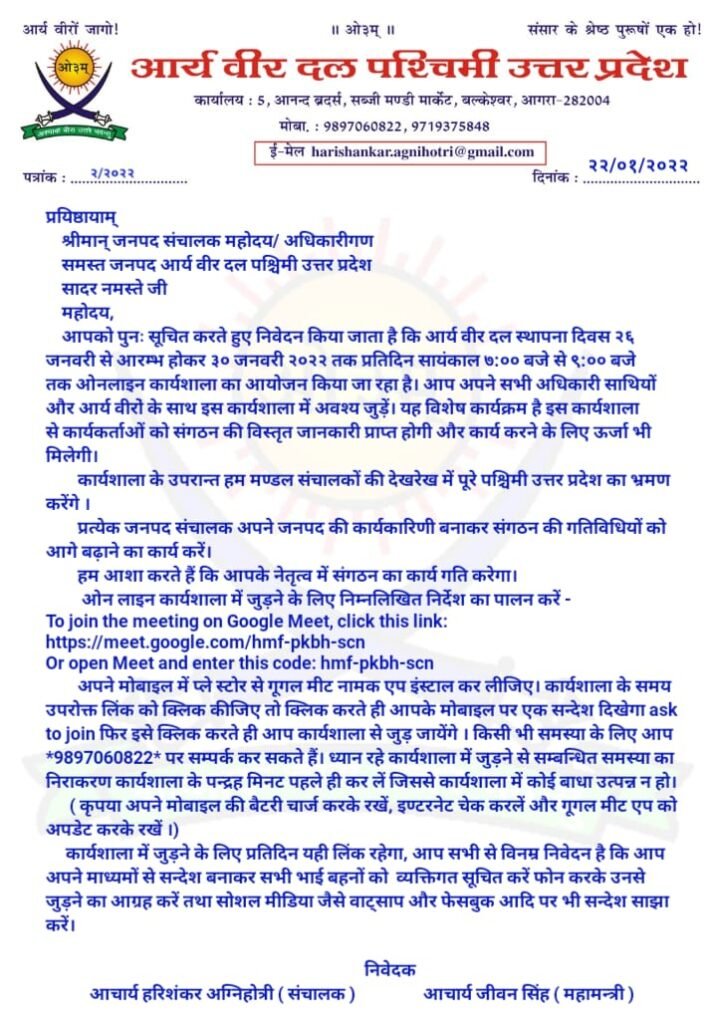 आर्य वीर दल पश्चिमी उत्तर प्रदेश की कार्यशालाBy Arya Veer Dal - January 1, 19700131FacebookTwitterPinterestWhatsApp