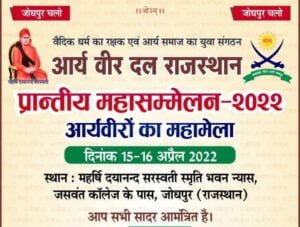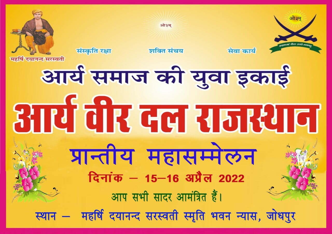 आप सभी महानुभावों से अत्यन्त हर्षपूर्वक निवेदन है कि इस बार शिविर से पृथक् *प्रथम* बार आर्य वीर दल राजस्थान का *प्रांतीय* *सम्मेलन* आयोजित किया जा रहा है जिसकी सूचना इस प्रकार है👇🏼
