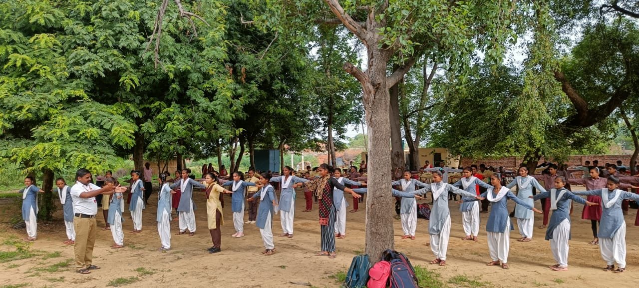 सर्वांग सुंदर व्यायाम एवं आत्मरक्षा के अभ्यासों कों सीखते हुए 120 छात्र-छात्राएं बीपीएस जूनियर हाई स्कूल करीलिया जनपद अलीगढ़