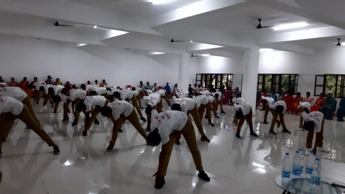 तभी गाॅव-गाॅव से चरित्रवान नागरिक निकल सकेंगे। इसके पश्चात बच्चों ने प्रशिक्षक विनय आर्य के सानिध्य में आत्मरक्षार्थ लाठी, जूडो कराटे, त्रिदेश मुष्टि प्रहार, अर्द्धमुष्टि प्रहार, हस्ततल प्रहार आदि का प्रदर्शन कर लोगों को क्रान्तिकारियों का दर्शन कराया। योगासनों एवं व्यायामों के माध्यम से बच्चों ने विभिन्न प्रकार के स्तूप, मानव पुल एवं हिमालय सहित दर्जन भर दृश्यों का प्रदर्शन किया साथ ही आग के गोले में दो-दो बच्चों ने एक साथ छलांग लगाई।