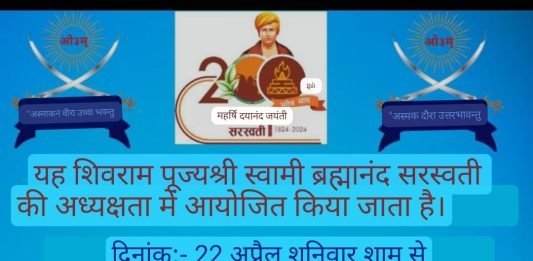 यह शिवराम पूज्यश्री स्वामी ब्रह्मानंद सरस्वती की अध्यक्षता में आर्य वीर दल प्रशिक्षण शिविर आयोजित किया जाता है। आर्य वीर दल प्रशिक्षण शिविर :- दिनांक:- 22 अप्रैल शनिवार शाम से रविवार, 30 अप्रैल तक योग्यता – 8वीं, 9वीं, 10वीं, 11वीं, 12वीं कक्षा छात्र इनसे भी संपर्क कर सकते हैं। टैरिफ : -1500/- रुपये। केवल दान … Continue reading आर्य वीर दल प्रशिक्षण शिविर तेलंगाना 2023