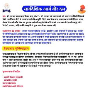 आर्य वीर दल द्वारा जुलाई-अगस्त का निर्देश 2023